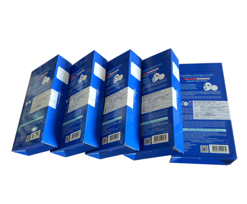 ◆ 應(yīng)用實(shí)例:面膜盒上下面、側(cè)面同時貼標(biāo)。